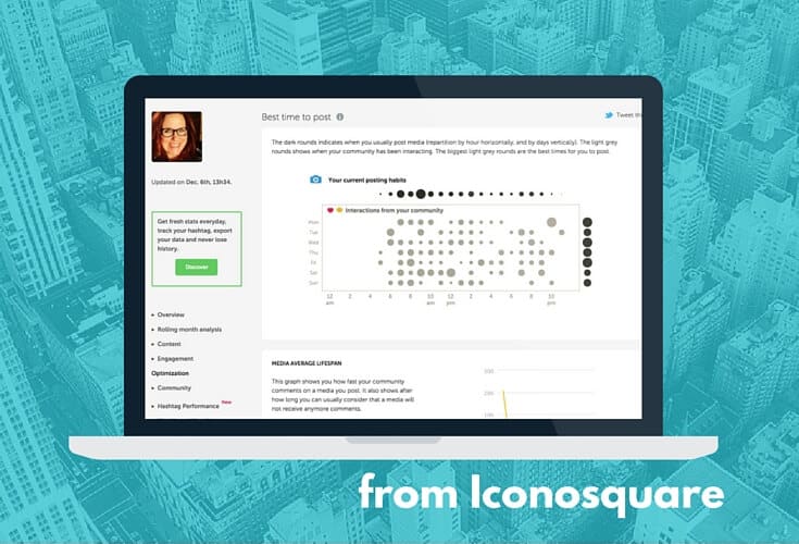 Jeff Sieh, social media pro and manager of the Social Media Examiner’s Instagram account says,ย “Make sure to use a tool to track your Instagram metrics like Iconosquare to analyze the best times to post. I’ve found with the accounts that I manage, the day of the week and time of day matters for likes and engagement of posts.”