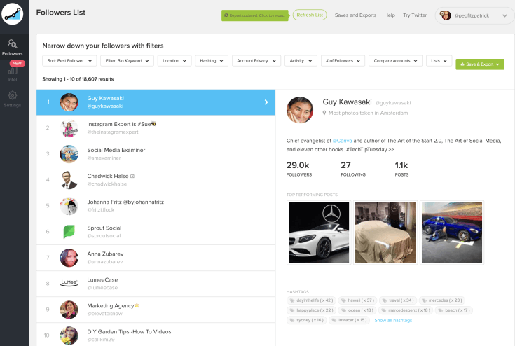 Here’s a peek into my Social Rank showing my “best followers.” This is great information!