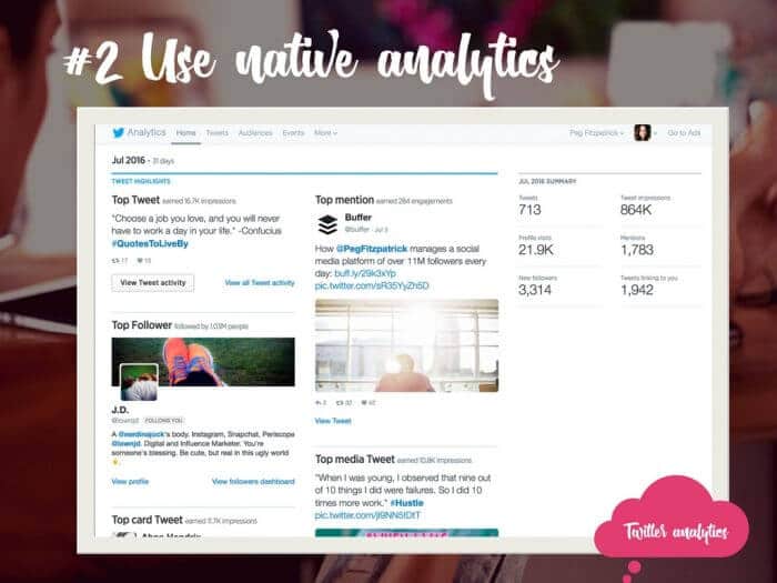 Twitter, Facebook, Instagram, and Pinterest all provide fantastic analytics with the upgraded, free business accounts. Use them!