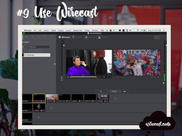 Wirecast allows you to go from unknown to superstar with your Facebook Live productions. You can set up shots with your webcam, an external camera, smartphone, or tablet and add other fancy things like pre-roll videos and graphic overlays.
